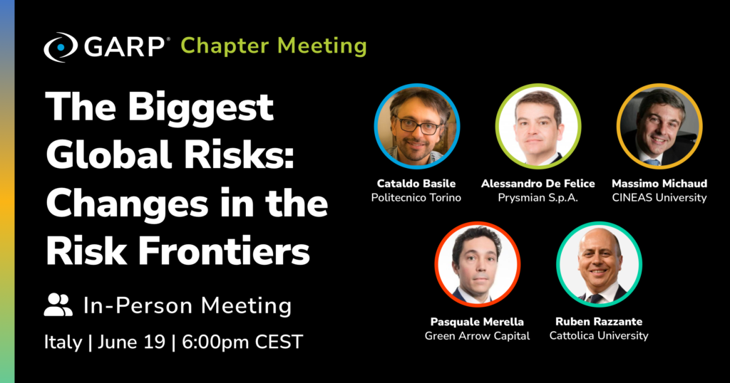 Per partecipare all’evento è necessaria l’iscrizione: https://www.garp.org/membership/chapters/meetings/2024-06-19-italy-chapter-meeting